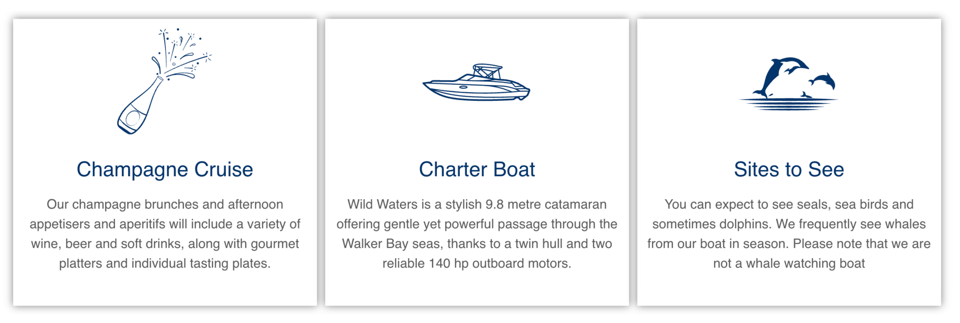 Departing from the New Harbour, Wild Waters offers luxurious and exclusive two-hour cruises - each designed for a touch of indulgence. Choose between a champagne brunch, afternoon appetisers, or sundowner aperitifs as you glide along the coastline aboard a sleek 9.8-metre catamaran.